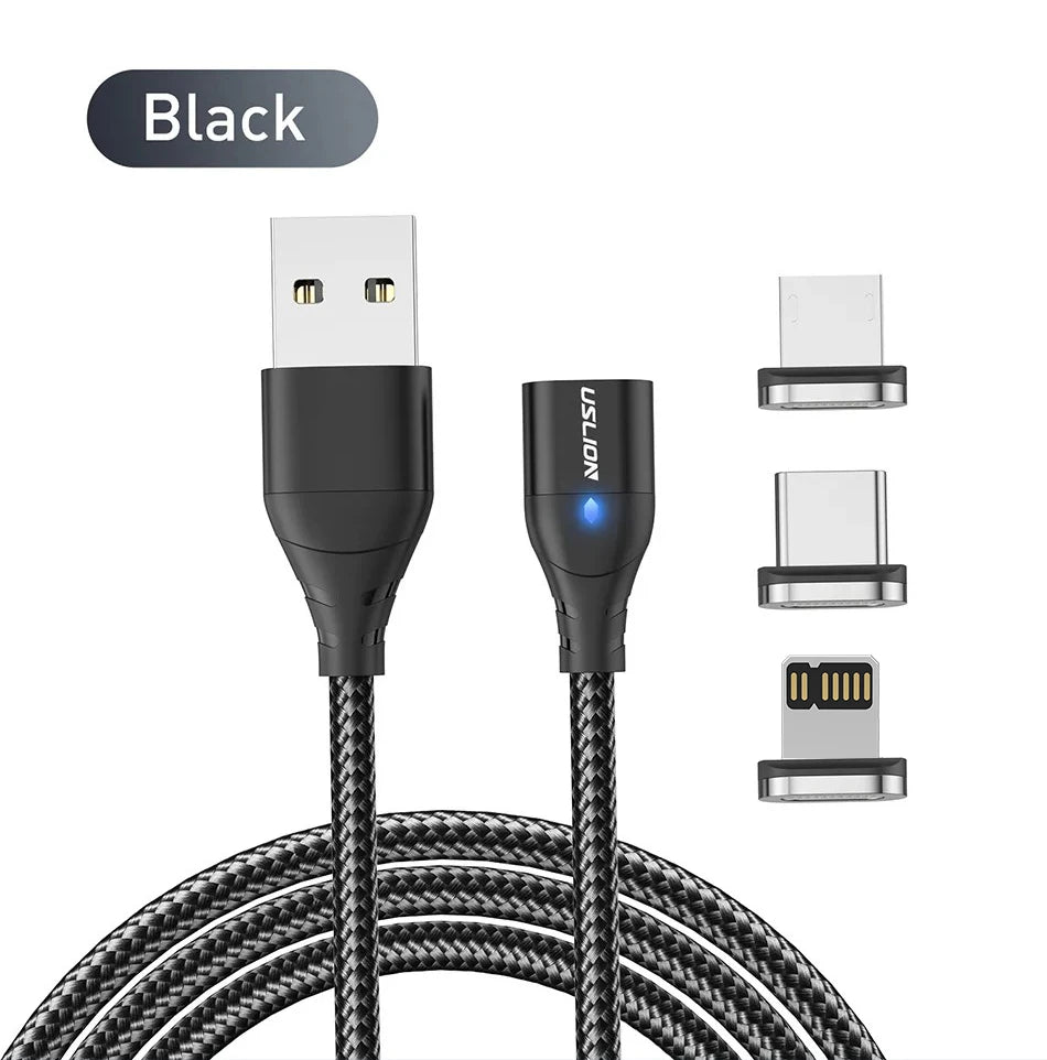 USLION Magnetic Cable Micro USB Type C Lighting Cable For iPhone 13 12 11 3A Fast Charging Wire USB C Magnet Charger Phone Cable
